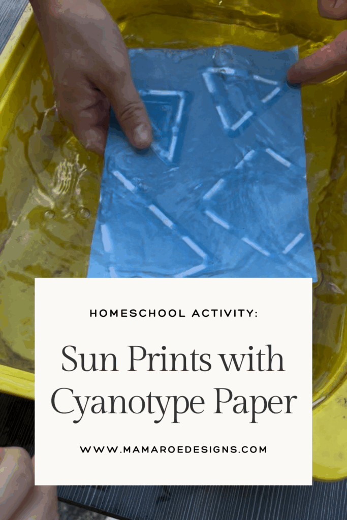 We stated back homeschooling this month and if I am being completely honest it has gone better than expected. We have had a few meltdowns and a few “this is boring!” moments, but overall nothing terrible. I contribute a lot of that to some fun projects I have sprinkled in to spice things up. One of the stars was working with Cyanotype paper! This was so cool and we used it as a science and art lesson! Science because it talks about chemicals, interactions with the sun, and looking at different types of nature. But also art because it is looking at different aspects of design and spacing and we are creating a picture. Making sun art with cyanotype paper would be the perfect homeschool activity for any age homeschooler. It is quick, easy, and not overly expensive.
